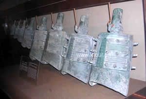 這些是編鐘是我國(guó)古代的一種樂(lè)器。由幾個(gè)或數(shù)十個(gè)大小不等音階不同的鐘依此編排成組懸掛在架子上演奏時(shí)通常小鐘是以木槌或金屬錘敲擊大鐘則以木棒或金屬棒敲擊。編鐘不但能演奏古曲還能敲奏出現(xiàn)代一些民歌小調(diào)和簡(jiǎn)單的樂(lè)曲。