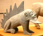 鎮(zhèn)墓獸是放置在墓中鎮(zhèn)墓驅(qū)邪確保死者靈魂安寧的種獸。這件人面獸身鎮(zhèn)墓獸與埃及的獅身人面像具有相同的藝術(shù)構(gòu)思可見半人半獸是東西方共有的神話觀念。
